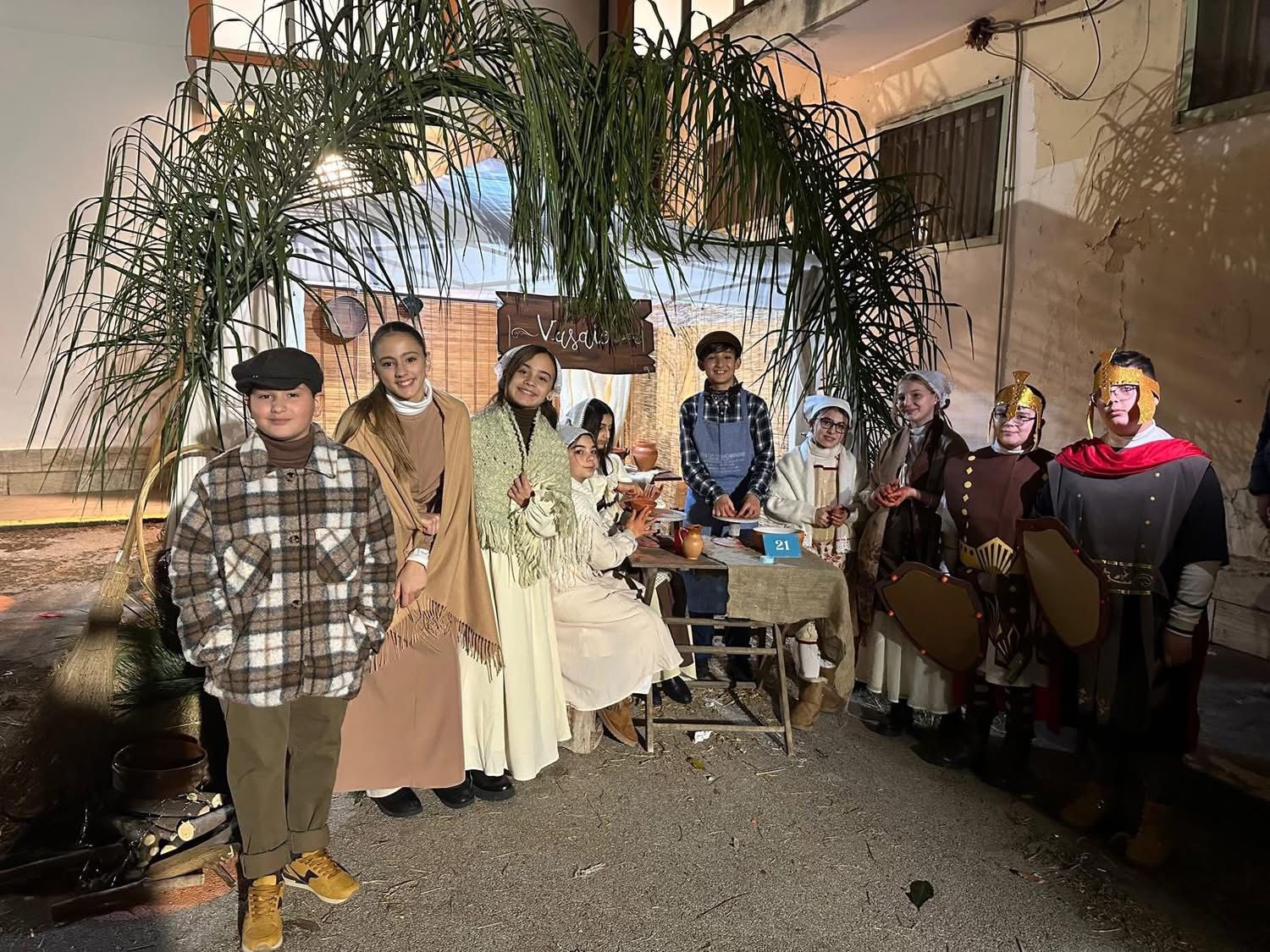 Nel cortile dell’istituto, oltre trenta postazioni allestite con cura e passione da docenti e genitori hanno ricreato mestieri, ambienti e atmosfere di duemila anni fa: pastorelli, centurioni romani, venditori ambulanti, lavandaie, sarte, esattori e locandieri hanno animato botteghe di falegnami, vinai e trattorie, attraversate da una folla continua. Il riscontro è stato quello delle grandi occasioni. Migliaia di visitatori hanno percorso i viali della scuola, accompagnati dai cori e dai canti natalizi degli alunni della scuola dell’infanzia, primaria e secondaria di primo grado. Tutti i segmenti scolastici hanno preso parte all’iniziativa con entusiasmo e partecipazione attiva, restituendo l’immagine di una comunità educante unita.