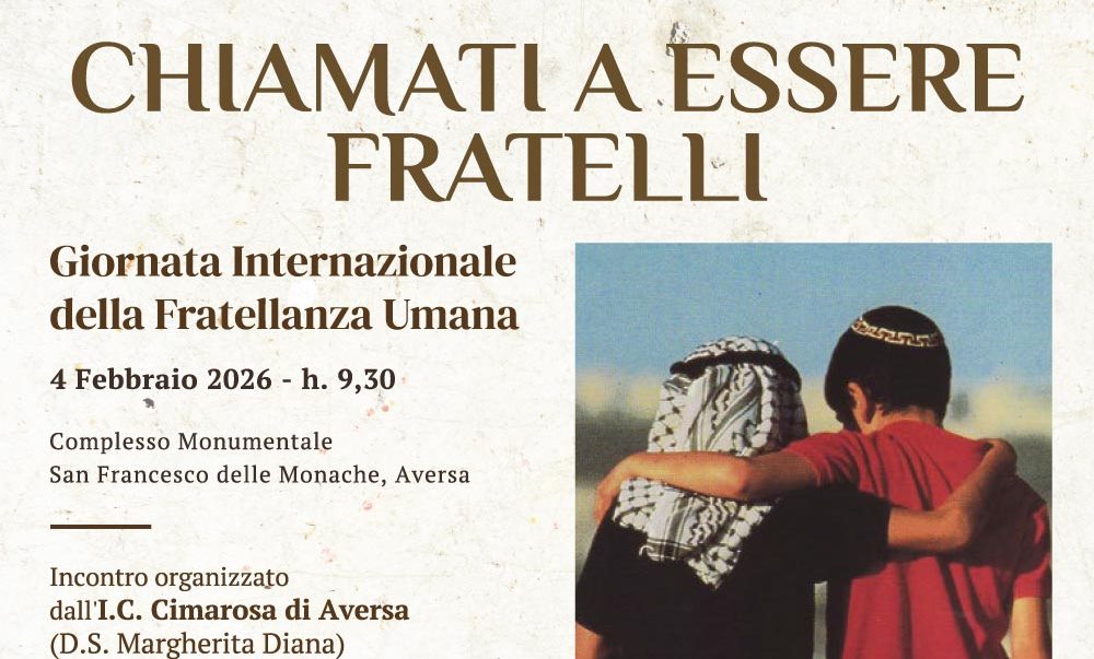 Aversa (Caserta) – In un tempo segnato da conflitti, fratture sociali e nuove disuguaglianze, la fraternità torna al centro del dibattito pubblico come necessità, prima ancora che come valore. Il 4 febbraio si celebra la Giornata Internazionale della Fratellanza Umana, istituita dall’Assemblea Generale delle Nazioni Unite il 21 dicembre 2020, una ricorrenza che affonda le sue radici in un gesto preciso e carico di significato.