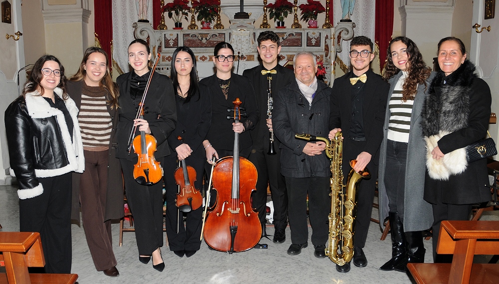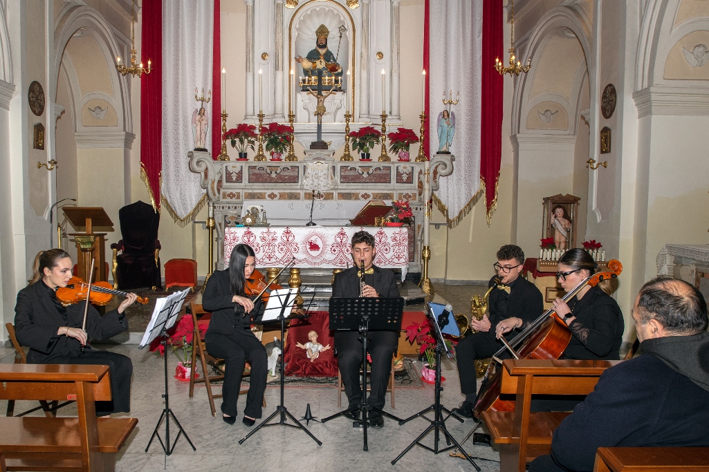Il filo conduttore del concerto è stato il cinema, con l’esecuzione di celebri colonne sonore firmate da Ennio Morricone, John Williams e Hans Zimmer. Accanto a queste, spazio anche a un sentito omaggio a Pino Daniele. Sul palco il gruppo musicale composto da Katia Carbone e Miriam Capaccio al violino, Valeria Melito al violoncello, Pasquale Zinno al clarinetto e Marco Ironico al sax baritono. Considerato il periodo, il repertorio ha incluso anche alcune melodie natalizie.