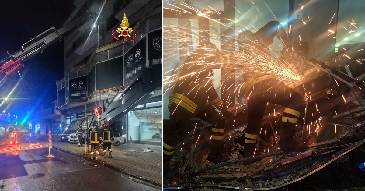La messa in sicurezza – L’insegna è stata smontata e rimossa pezzo per pezzo grazie a un intervento coordinato, consentendo il ripristino dell’accesso allo stabile e la completa messa in sicurezza del perimetro del concessionario.