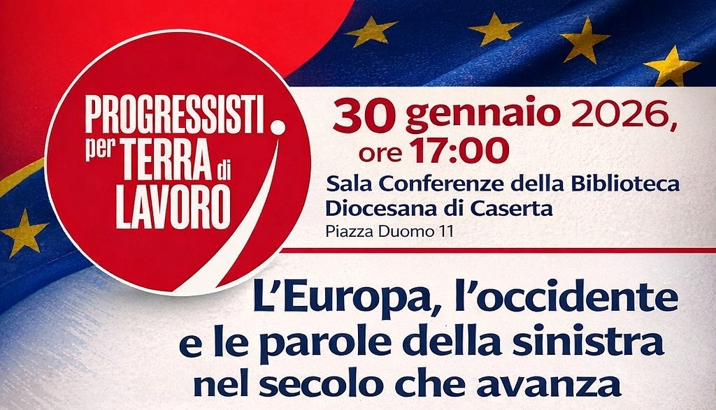 Caserta – Venerdì 30 gennaio, alle ore 17, la Sala Conferenze della Biblioteca Diocesana di Caserta, in piazza Duomo 11, ospiterà un momento di riflessione e confronto pubblico promosso dall’Associazione Progressisti per Terra di Lavoro, dedicato ai grandi temi politici e culturali del nostro tempo. L’incontro, dal titolo L’Europa, l’occidente e le parole della sinistra nel secolo che avanza, intende interrogarsi sulle sfide socio-economiche e geopolitiche che attendono la sinistra in un contesto internazionale segnato da rapide e profonde trasformazioni.