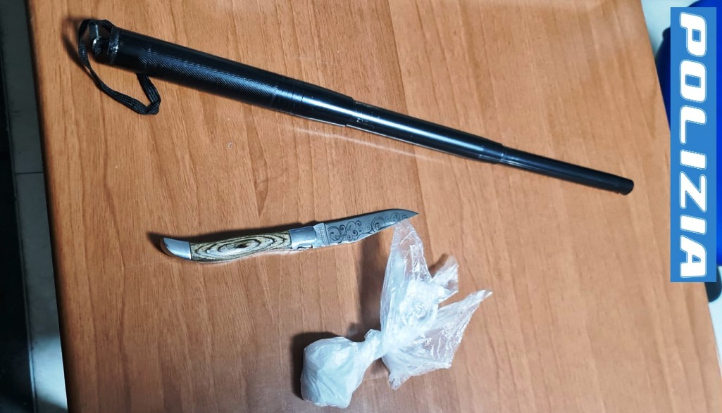 La perquisizione e la resistenza – Alla luce di quanto emerso, i poliziotti hanno esteso gli accertamenti al veicolo. Le operazioni non sono state immediate: il soggetto ha opposto resistenza, rendendo necessario l’intervento di un ulteriore equipaggio. La perquisizione ha consentito di rinvenire, all’interno dell’auto, un manganello metallico, un coltello a serramanico e diversi telefoni cellulari. Tutto il materiale è stato posto sotto sequestro.