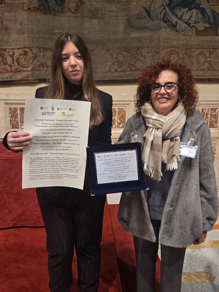 Il valore del lavoro svolto – L’attestato di merito consegnato alla studentessa sottolinea la maturità del pensiero espresso, l’efficacia del linguaggio teatrale e la capacità di rendere attuale una pagina centrale della storia italiana, con un particolare riconoscimento alla qualità della sceneggiatura. Un risultato che porta anche la firma della professoressa Maria Raucci, che ha seguito l’allieva nel percorso di preparazione, e della dirigenza scolastica, rappresentata dal dirigente scolastico Lorenzo de Simone e dalla vicepreside professoressa Marcella Tarigetto, presenti a Roma per condividere questo momento.