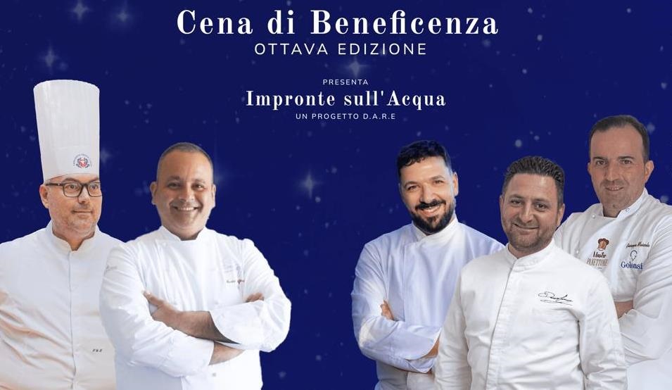 La “Notte dei desideri” – La cena di beneficenza, ribattezzata La Notte dei desideri, è giunta all’ottava edizione. L’appuntamento è fissato per domenica 9 febbraio, alle ore 19.30, al Casale dei Baroni di Santa Maria a Vico (Caserta). Ai fornelli ci saranno chef stellati e d’eccezione: Simone De Stefano, Mario Affinita, Francesco Nunziata, Domenico Iavarone e Giuseppe Mascolo. Il ricavato della serata, al netto delle spese, sarà devoluto all’associazione Dare per portare avanti Impronte sull’acqua.