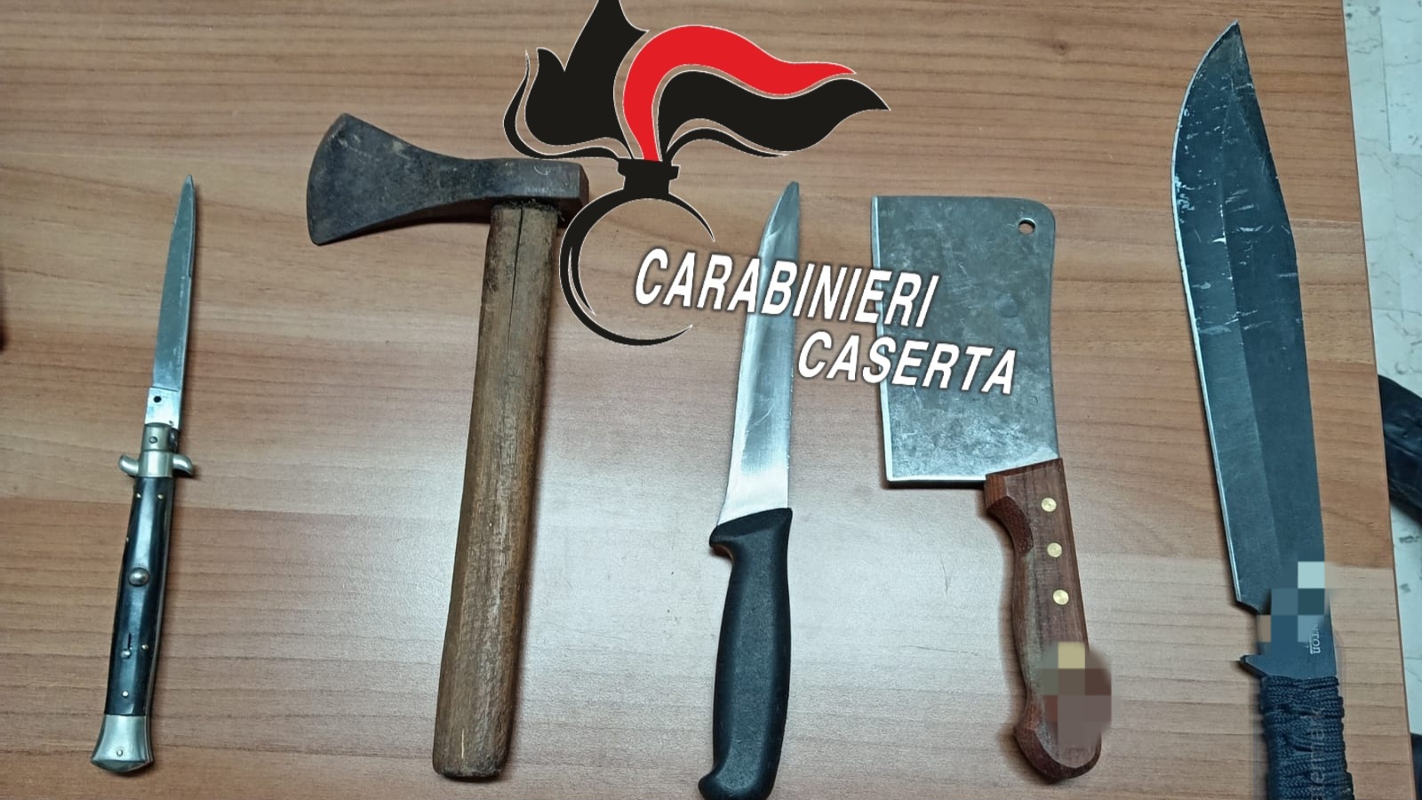 Le armi sequestrate – Nel corso della perquisizione personale e domiciliare, i carabinieri hanno rinvenuto un coltello a scatto occultato sulla persona dell’indagato e, all’interno di uno zaino custodito in un armadio nella sua esclusiva disponibilità, un’ascia, una mannaia, un machete e un coltello da cucina. Tutte le armi bianche sono state sottoposte a sequestro.