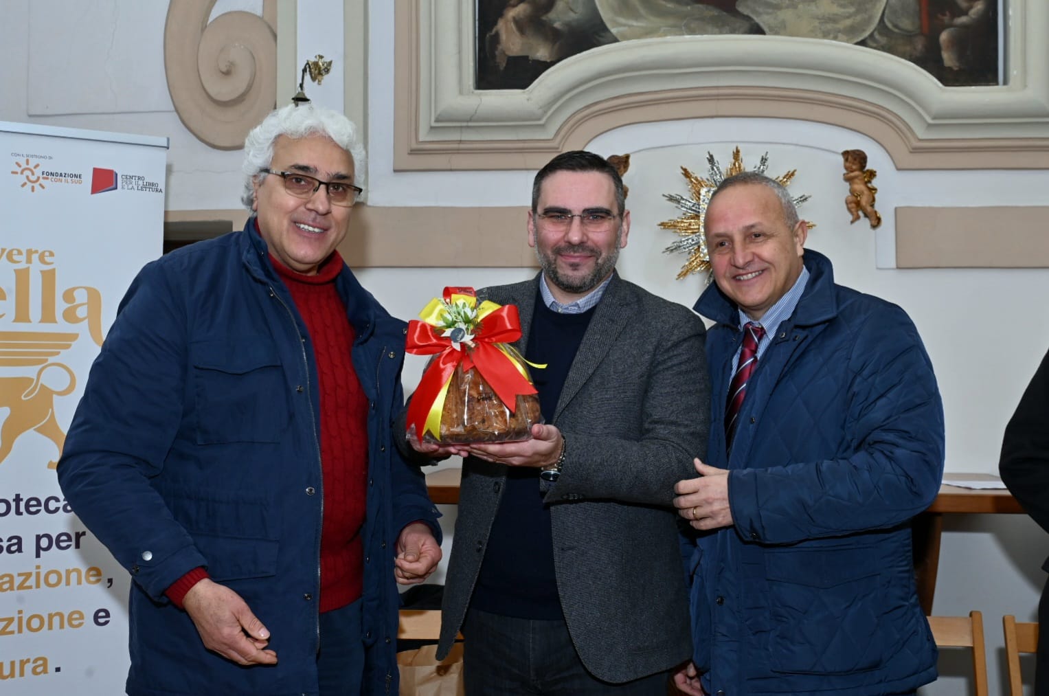 Il prof Limone socio onorario della Pro Loco – Al termine dell’incontro, al professore Limone è stato consegnato l’attestato di socio onorario della Pro Loco, in riconoscimento del suo impegno a favore della comunità santarpinese. La consegna è stata preceduta dalla lettura della poesia di Giorgio Lavino, A Giuseppe Limone, seminatore di sogni buoni per l’anima. Al professor Romano, infine, è stato donato un casatiello artigianale dell’antica norcineria Gifuni. SOTTO UNA GALLERIA FOTOGRAFICA