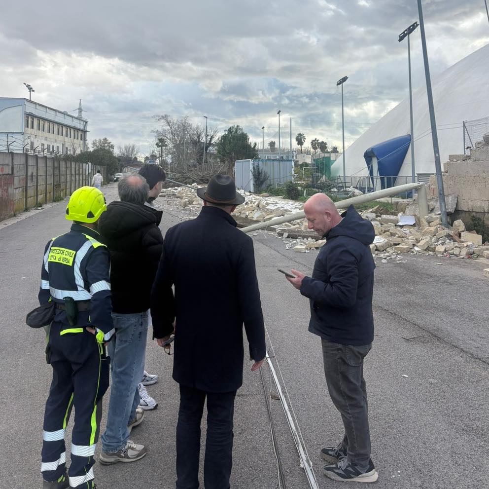 Via Cappuccini, i danni più gravi – È qui che la furia del vento ha colpito con maggiore intensità. Un albero di grandi dimensioni è crollato sul muro di cinta che delimita la tensostruttura dello “Zodiaco Sporting Hub”, provocandone il cedimento. Blocchi di pietra sono finiti sull’asfalto, mentre quattro pali delle telecomunicazioni sono stati abbattuti e divelti anche fili della luce. L’area interessata ospita l’istituto “La Sala” e il centro sportivo “Zodiaco”: all’interno della struttura sportiva si registrano danni ai campi, mentre la piscina “H2O” è rimasta intatta, con impianti e area messi in sicurezza. Per motivi precauzionali è stata interrotta l’energia elettrica tra viale Olimpico e via Cappuccini. La strada è stata chiusa al transito e disposta la chiusura sia della piscina H2O sia dello Zodiaco. Disagi alla viabilità e possibili interruzioni temporanee dei servizi completano il quadro.