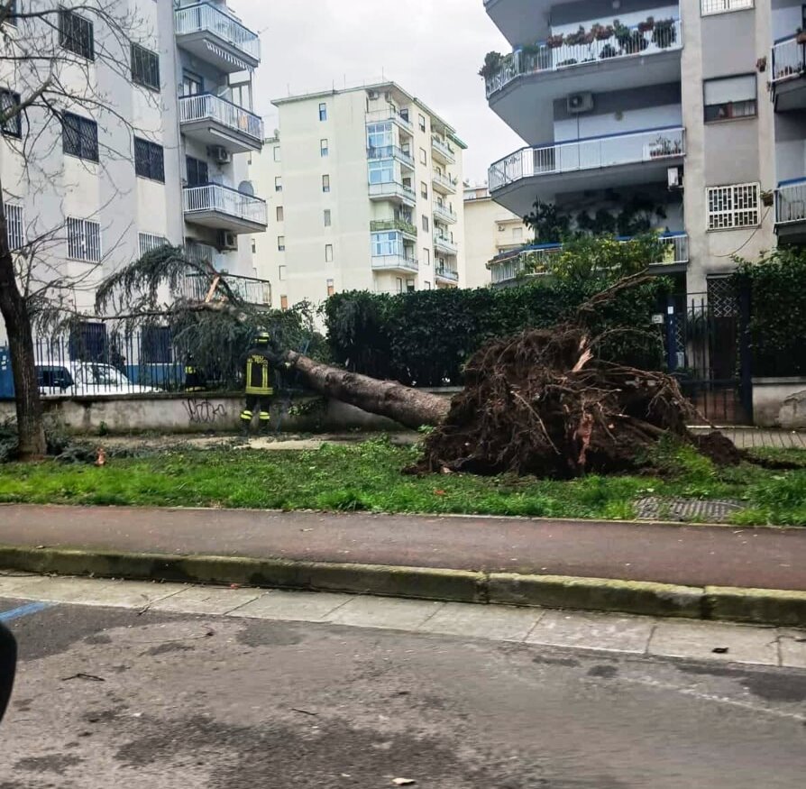 Alberi sradicati e pannelli divelti in altre zone – In via Belvedere e in via Botticelli, a pochi passi da Porta Napoli e via Roma, diversi alberi sono stati sradicati e scaraventati in strada, finendo davanti alle vetrine di alcune attività commerciali. Sempre in quell’area sono volati via pannelli in metallo, ricaduti sui marciapiedi. In via Raffaello, al Parco Argo, un grosso arbusto si è abbattuto con la chioma finita su alcune auto parcheggiate lungo la strada, occupando parte della carreggiata. In via Salvo D’Acquisto un piccolo albero si è spezzato, mentre le raffiche hanno spostato diversi cassonetti dei rifiuti sulla carreggiata, causando rallentamenti alla circolazione. In diverse zone si segnalano alberi e pali della pubblica illuminazione caduti.