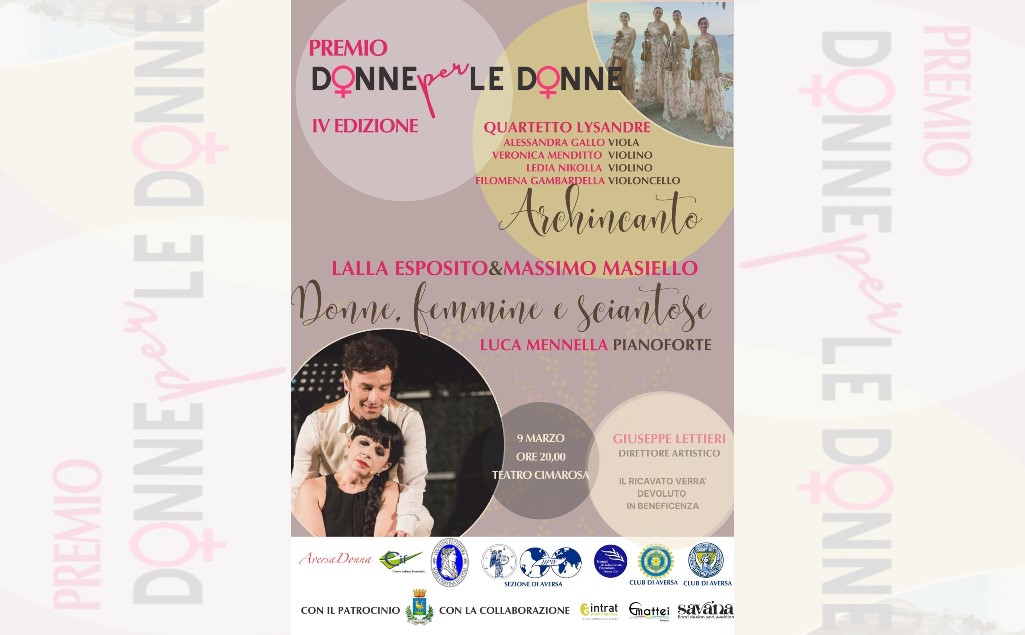 Aversa (Caserta) – L’appuntamento è fissato per lunedì 9 marzo, alle ore 20, al Teatro Cimarosa, dove andrà in scena la quarta edizione del Premio “Donne per le Donne”, riconoscimento dedicato alle eccellenze femminili del territorio che si sono distinte nei più diversi ambiti: dall’arte allo sport, dalla narrativa alla medicina e alla ricerca.