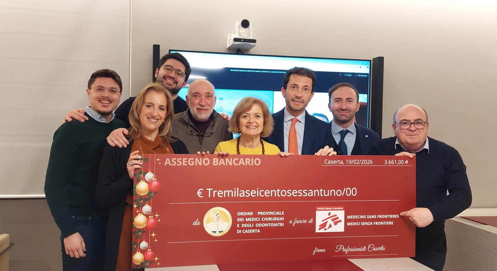 Caserta – La solidarietà della comunità medica si traduce in un sostegno concreto: 3.661 euro destinati a Medici Senza Frontiere, frutto della serata benefica promossa dall’Ordine provinciale dei Medici Chirurghi e degli Odontoiatri di Caserta lo scorso 23 dicembre a Palazzo Paternò.