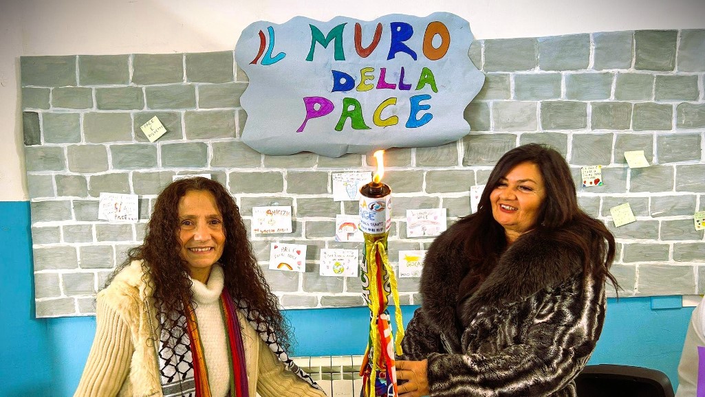 La giornata della Pace – Performance, canti, colori e messaggi contro tutte le guerre hanno scandito una giornata intensa, costruita attorno alla memoria e alla responsabilità. È stato ricordato il dramma della Shoah e di tutte le Shoah nel mondo, quello dei bambini vittime dei conflitti, privati del diritto a vivere in pace. “Per loro noi dobbiamo essere voce e luce in questi tempi di oscurità e di guerra. La luce di questa Fiaccola deve ricordarci l’impegno che dobbiamo portare avanti ogni giorno per costruire sentieri di Pace intorno a noi”, ha ricordato Agnese Ginocchio, presidente del Movimento Internazionale per la Pace III Millennio, ente promotore della mobilitazione partita nel 2014 in collegamento con le celebrazioni del centenario della fine del primo conflitto mondiale. “Alla luce dei fatti che stanno accadendo, non possiamo volgere lo sguardo dall’altra parte, diventa doveroso e urgente che la Scuola educhi alla Pace, accogliendo e facendo nostro il messaggio della Fiaccola”, ha detto la dirigente Di Lorenzo.