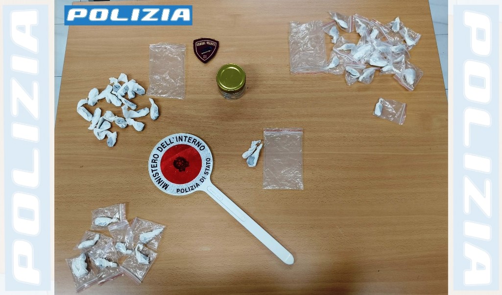 Gli agenti del commissariato di Casal di Principe, impegnati nei servizi di controllo del territorio, hanno notato il veicolo nel parcheggio di una pizzeria. L’atteggiamento nervoso dei passeggeri ha spinto gli operatori ad approfondire. La perquisizione personale ha permesso di rinvenire, addosso al più giovane, oltre quaranta involucri di hashish e circa 800 euro in contanti, ritenuti probabile provento dell’attività di spaccio. L’altro occupante dell’auto è stato trovato in possesso di un ulteriore involucro di sostanza nel giubbino. Per lui è scattata la segnalazione alla Prefettura per l’avvio delle procedure amministrative connesse all’uso personale.