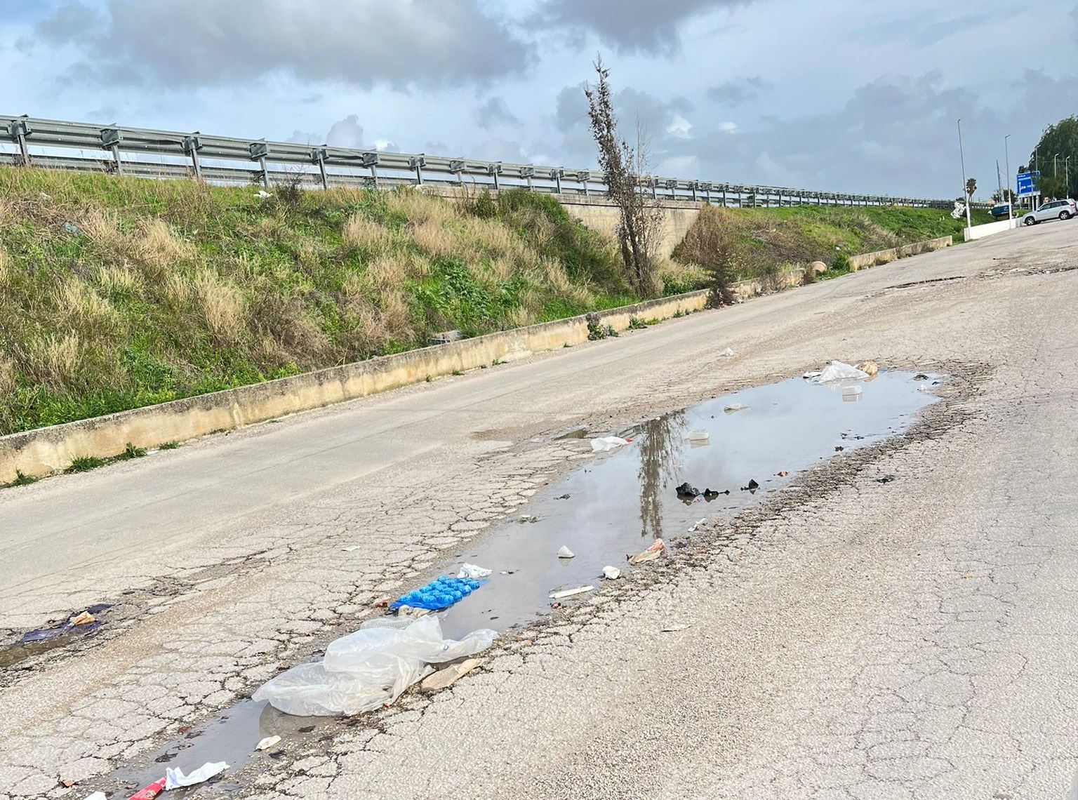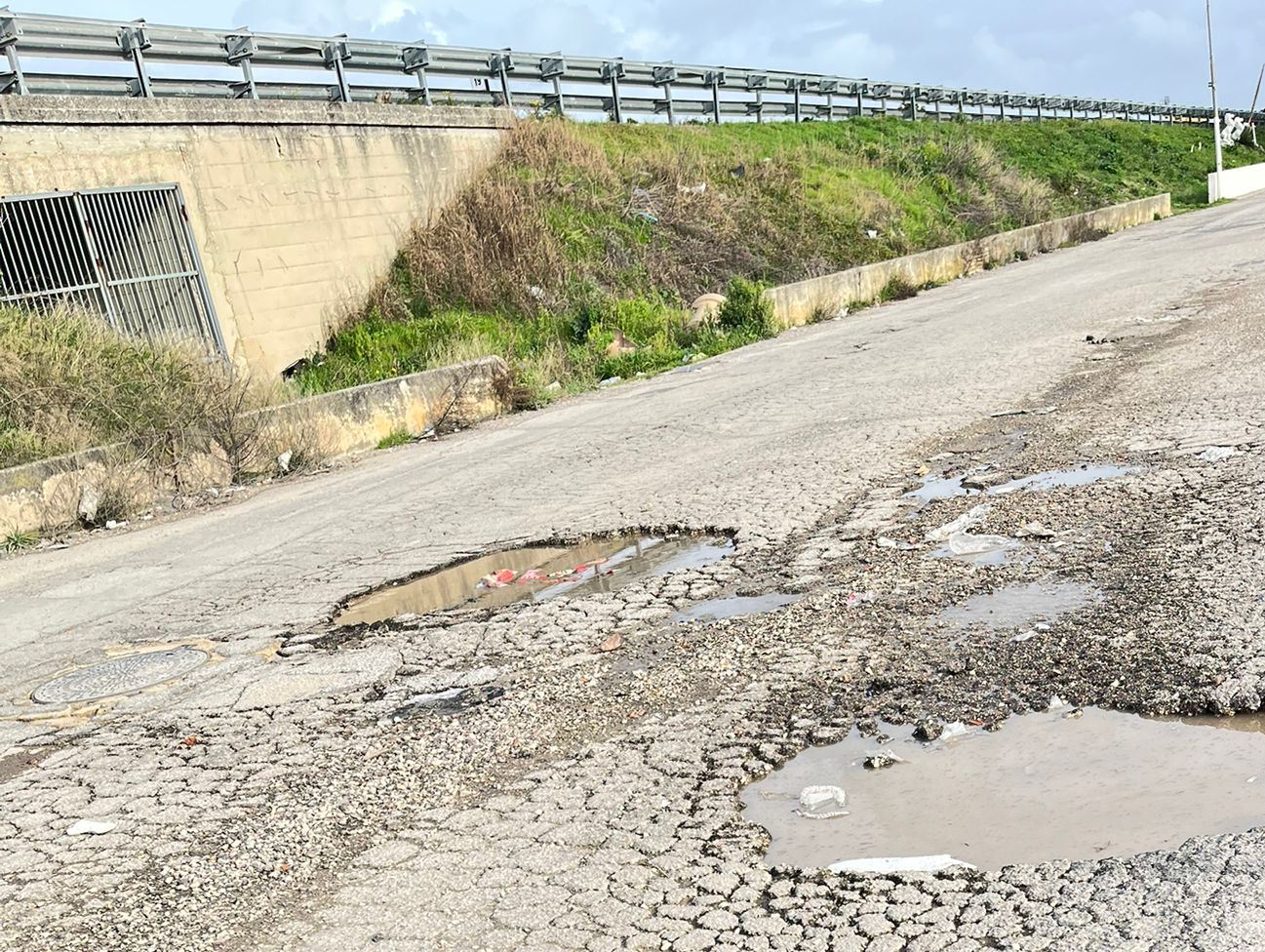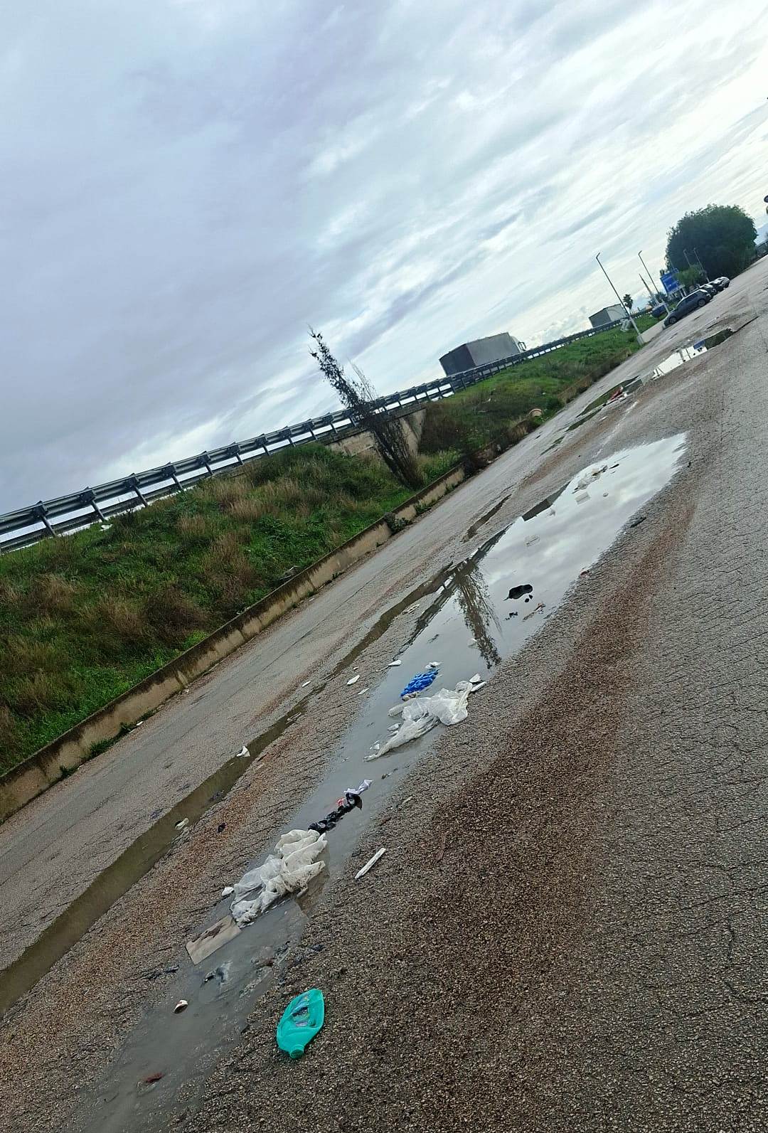 Via Salvo d’Acquisto e l’area mercato – Non meno critica la situazione di via Salvo d’Acquisto, strada situata nei pressi dell’area mercato e che costeggia la scarpata della statale Nola–Villa Literno. Oltre alle buche, i cittadini segnalano la presenza diffusa di rifiuti abbandonati lungo la carreggiata e ai margini della strada, con sacchi e scarti visibili anche nelle pozzanghere formatesi sull’asfalto dissestato.