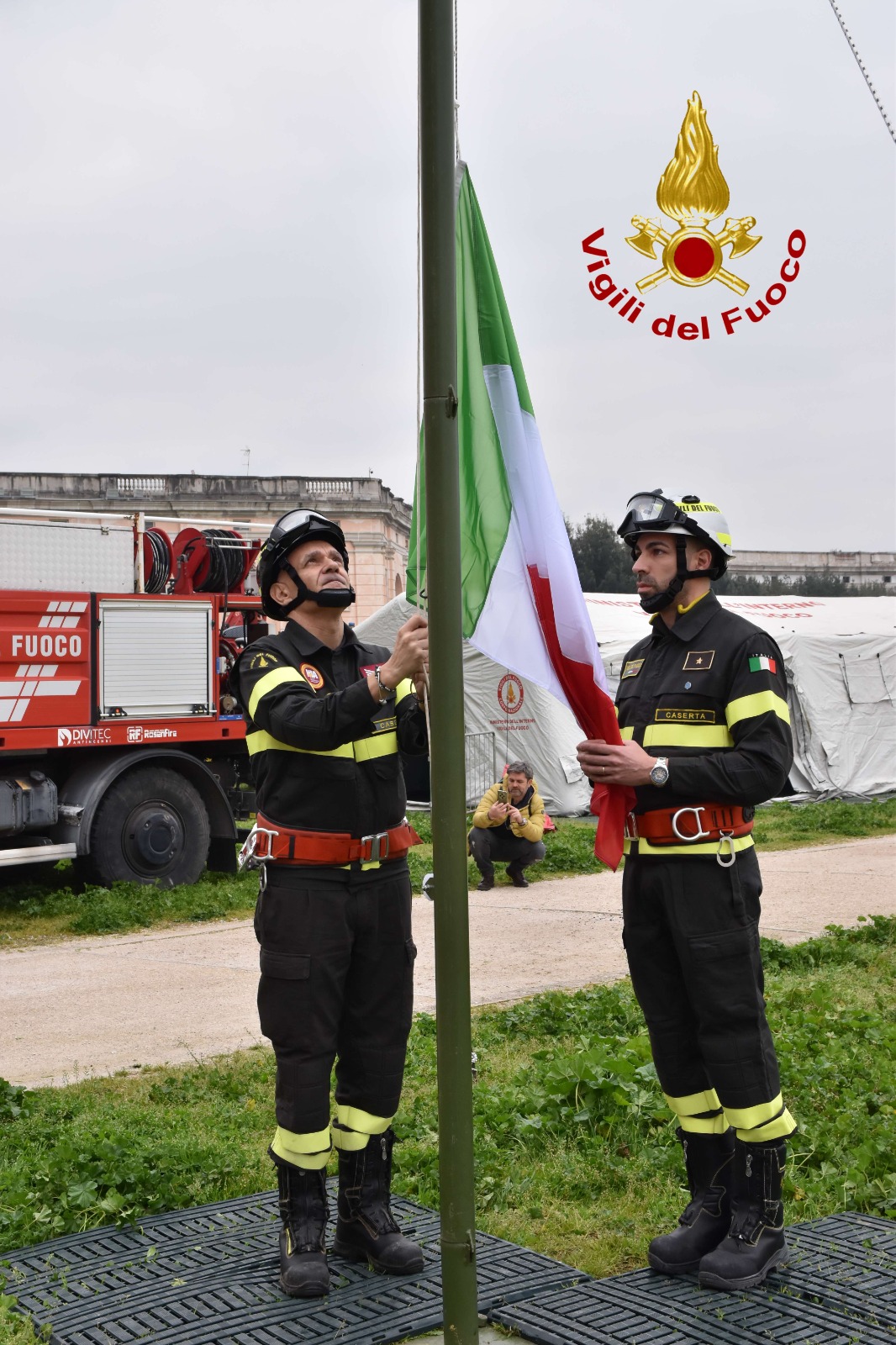 La cerimonia alla Reggia – Il comando provinciale dei vigili del fuoco di Caserta ha voluto una cornice solenne per la prima edizione dell’evento, accogliendo oltre 100 invitati tra autorità civili e militari, rappresentanti della stampa e scolaresche. Davanti alla facciata principale del complesso vanvitelliano si è svolta la fase iniziale della cerimonia, con gli onori resi al vicario del prefetto, Biagio del Prete, accolto dal comandante provinciale, dirigente superiore architetto Maria Angelina D’Agostino. L’alzabandiera, momento centrale della mattinata, ha rappresentato il tributo al Tricolore e ai valori di protezione, solidarietà e tutela della vita umana che ispirano l’azione del Corpo.
