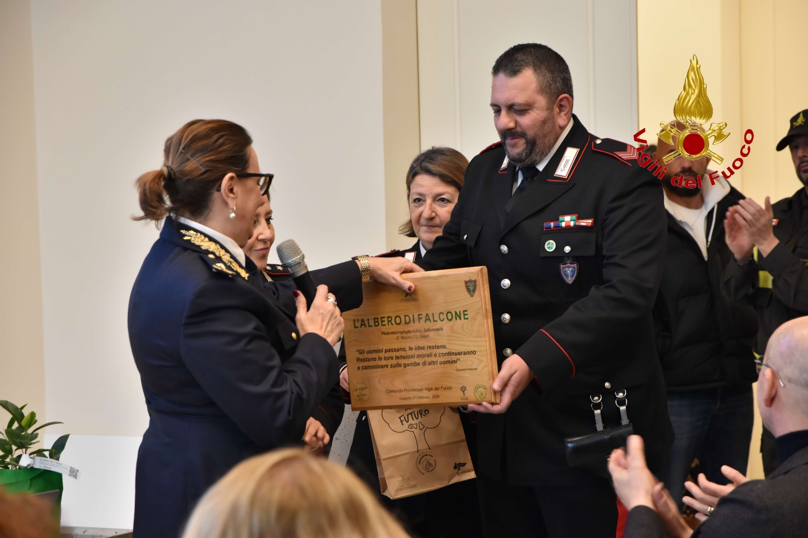 I video e gli interventi istituzionali – La seconda parte si è tenuta nella sala “Terra di Lavoro”, dove sono stati proiettati tre video. Il primo ha ripercorso le tappe fondamentali del Corpo nazionale fino ai giorni nostri; il secondo ha illustrato i traguardi raggiunti dal comando di Caserta nel 2025; il terzo, dal taglio emozionale, ha mostrato non solo interventi e operazioni, ma anche il volto umano di chi ogni giorno sceglie di esserci. Le proiezioni sono state intervallate dai saluti del prefetto di Caserta, Lucia Volpe, del commissario straordinario del Comune di Caserta, Antonella Scolamiero, del direttore generale della Reggia di Caserta e del presidente provinciale Unicef Caserta, Lia Pannitti, fino alla relazione conclusiva del comandante provinciale Maria Angelina D’Agostino.