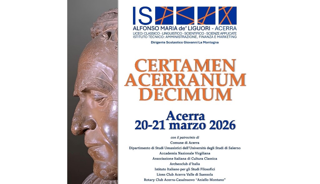 Acerra (Napoli) – Dieci anni di passione per il latino e per il patrimonio culturale dell’antichità. Il Certamen Acerranum, ideato e promosso dal Liceo Statale “Alfonso Maria de’ Liguori” di Acerra, taglia il traguardo del decennale confermandosi un appuntamento dedicato alla valorizzazione delle lingue classiche, considerate un patrimonio culturale da custodire e trasmettere alle nuove generazioni. Il 20 e il 21 marzo, al termine di un lungo percorso di preparazione, giovani studiosi della lingua latina provenienti da diversi licei italiani si sfideranno nella competizione rivolta agli studenti del quarto e quinto anno dei Licei Classici e Scientifici.