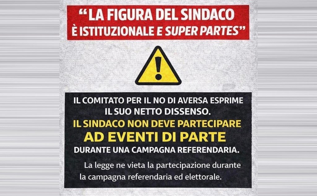 Secondo quanto riportato dal comitato, dai manifesti affissi in città emergerebbe che il sindaco interverrà portando i propri saluti all’interno di un evento di parte nel pieno della campagna referendaria. Una circostanza che, secondo i promotori del No, non sarebbe compatibile con il ruolo istituzionale ricoperto dal primo cittadino.