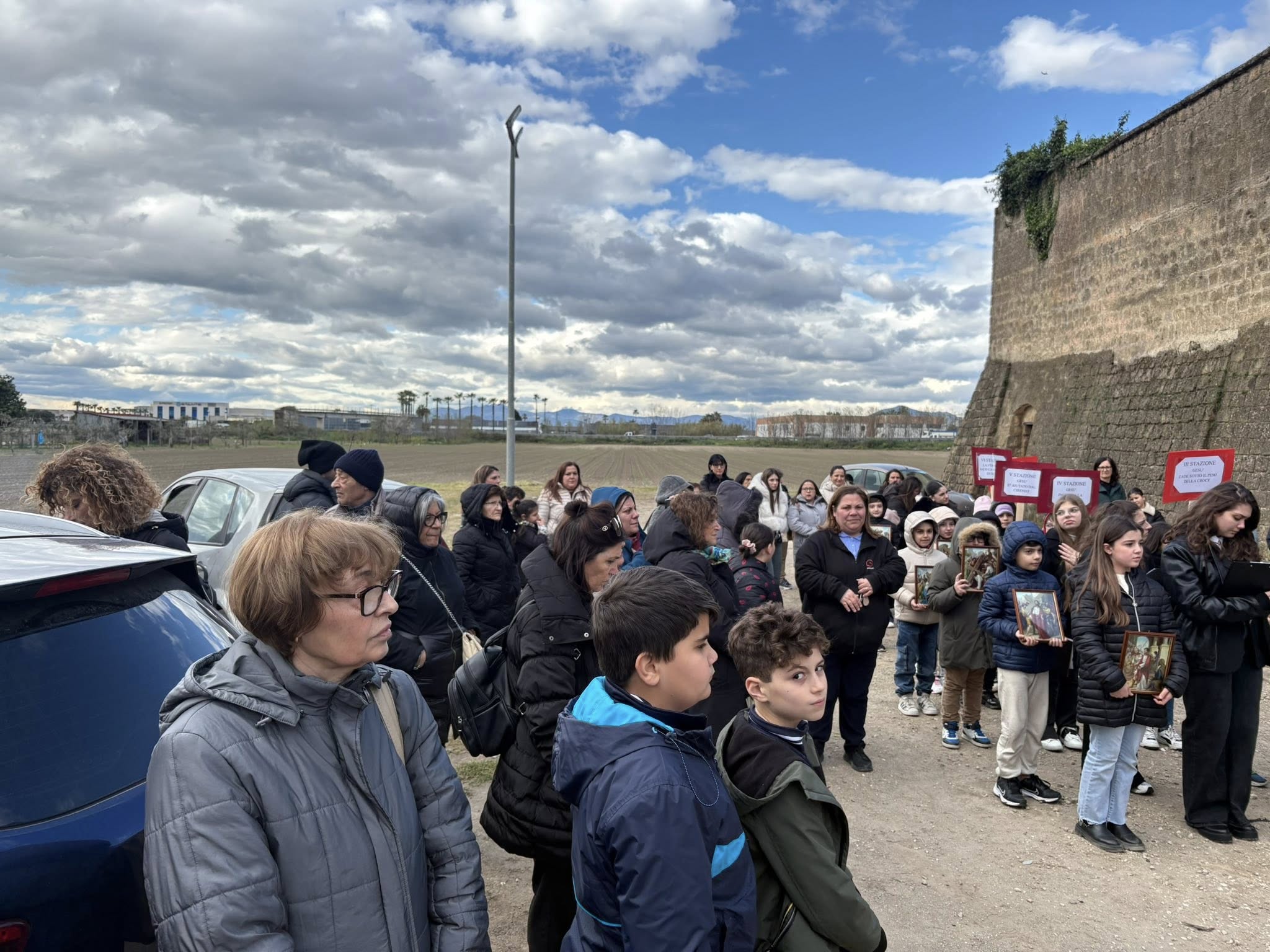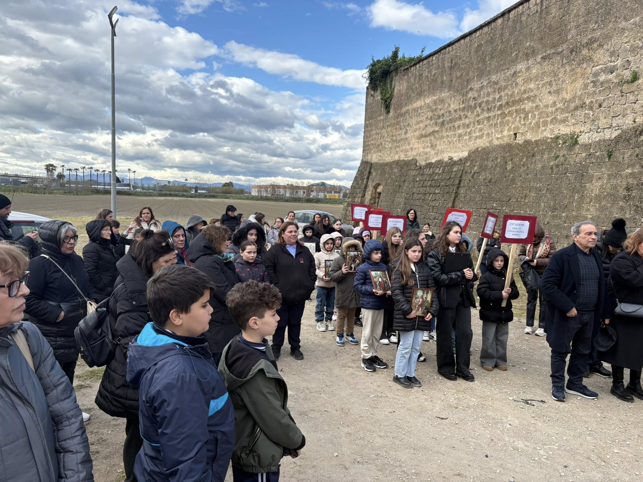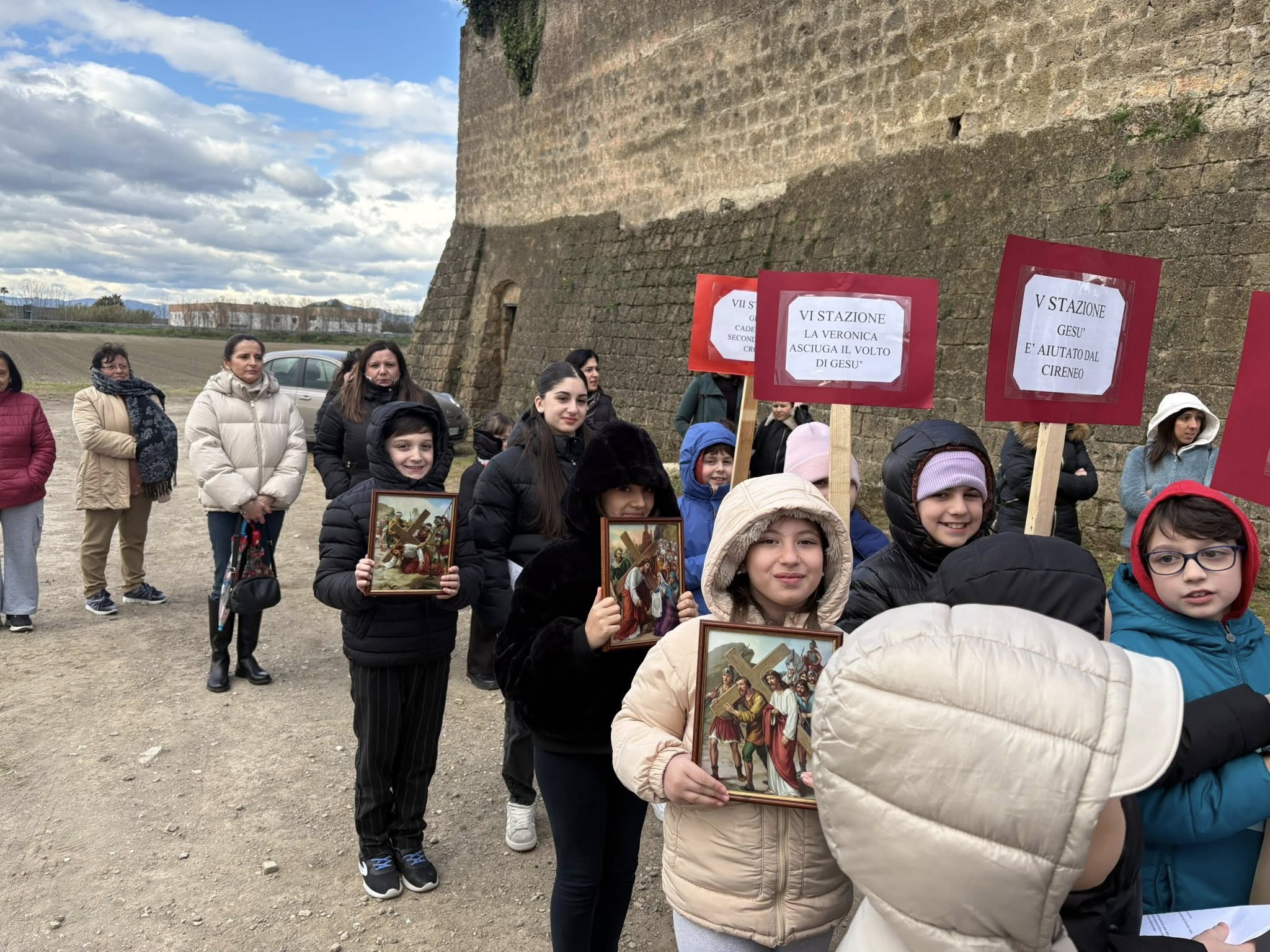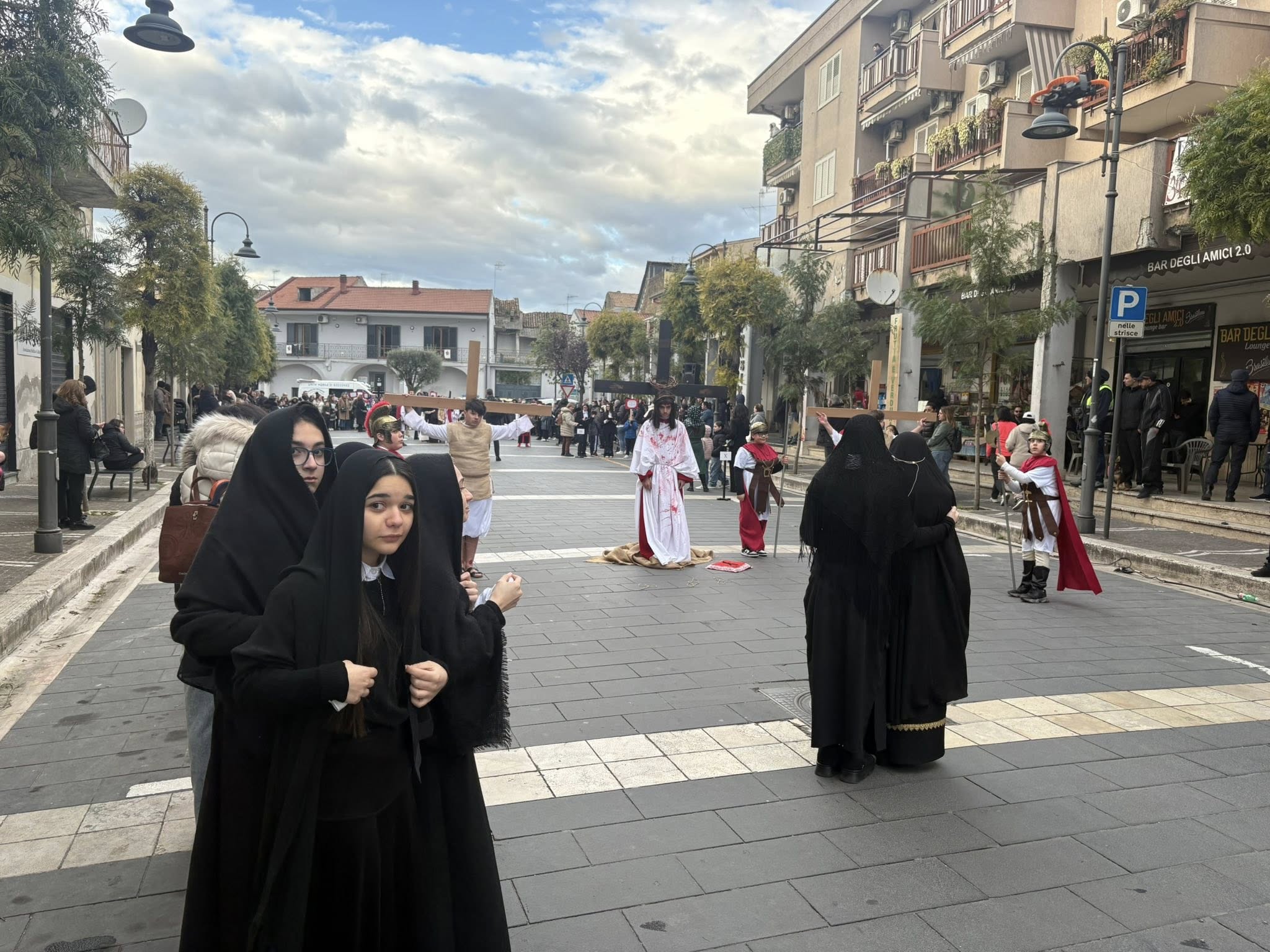 Il percorso con studenti e famiglie – A rendere particolarmente significativa la rappresentazione sono stati gli studenti, veri protagonisti dell’evento. I ragazzi hanno interpretato le diverse stazioni, indossando abiti d’epoca e dando vita ai momenti della Passione di Cristo. Un impegno sostenuto anche dalle famiglie che, insieme ai docenti, hanno contribuito in modo determinante alla riuscita delle rappresentazioni. La Via Crucis è partita dall’area campestre del Palazzo di Casignano, attraversando via Piave fino a raggiungere piazza Trieste. Un cammino condiviso da alunni, insegnanti e cittadini che ha coinvolto l’intera comunità. Al termine, è stato offerto un dono pasquale a tutti gli alunni presenti.