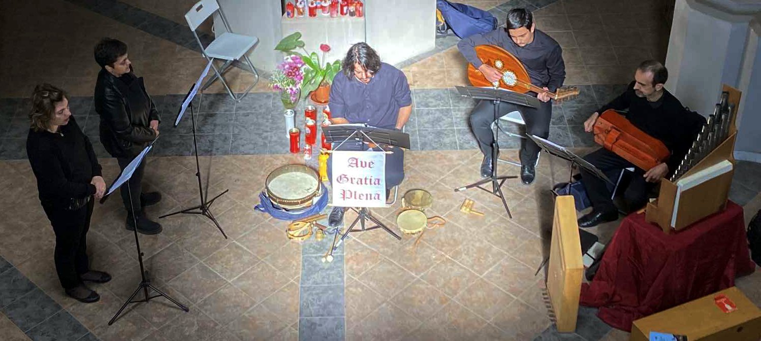 Gli interpreti – L’esecuzione è affidata al gruppo vocale e strumentale “Ave gratia plena”. A interpretare i brani saranno Elena Polito (voce), Dario Alifano (voce e percussioni), Raffaele Bove (liuto e voce), Luigi Funiciello (oud e voce) e Pietro Di Lorenzo, impegnato con organo, salterio, ghironda, flauti e cornamuse.