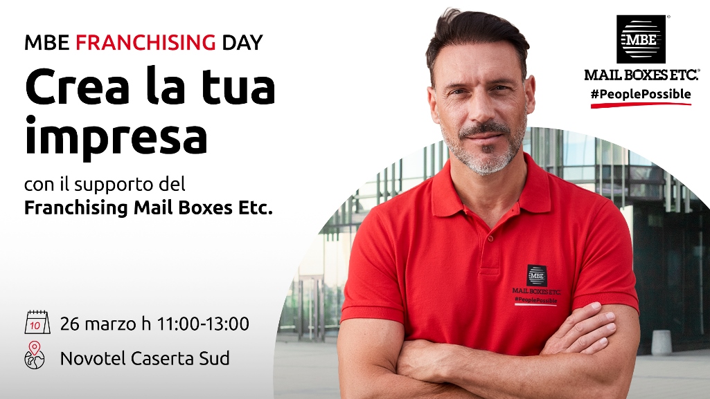 Caserta – Un’occasione per conoscere da vicino il mondo del franchising e valutare nuove opportunità imprenditoriali nel settore dei servizi alle imprese. È questo l’obiettivo dell’MBE Franchising Day, in programma giovedì 26 marzo, dalle ore 11.30 alle 13, al Novotel Caserta Sud, a Capodrise. L’incontro, a partecipazione gratuita con registrazione online, è rivolto a chi desidera avviare un’attività imprenditoriale entrando in un network internazionale consolidato.