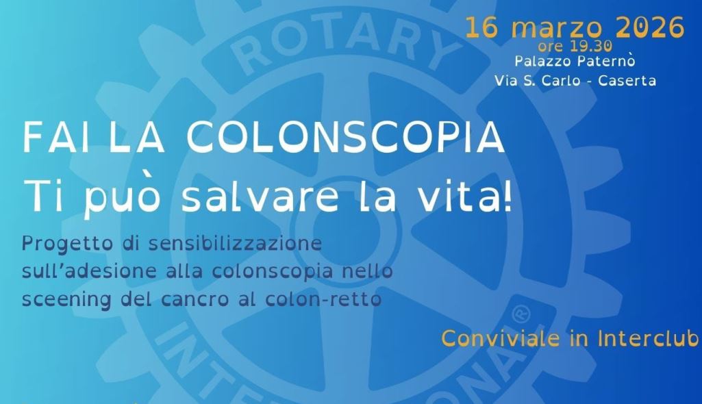 Caserta – La prevenzione come prima e più efficace arma per salvare vite umane. È il tema al centro dell’incontro interclub promosso dal Rotary in programma lunedì 16 marzo, alle 19.30, nello storico Palazzo Paternò di Caserta, appuntamento che riunirà otto club delle province di Caserta e Napoli per un confronto dedicato alla tutela della salute e alla diagnosi precoce dei tumori del colon-retto.
