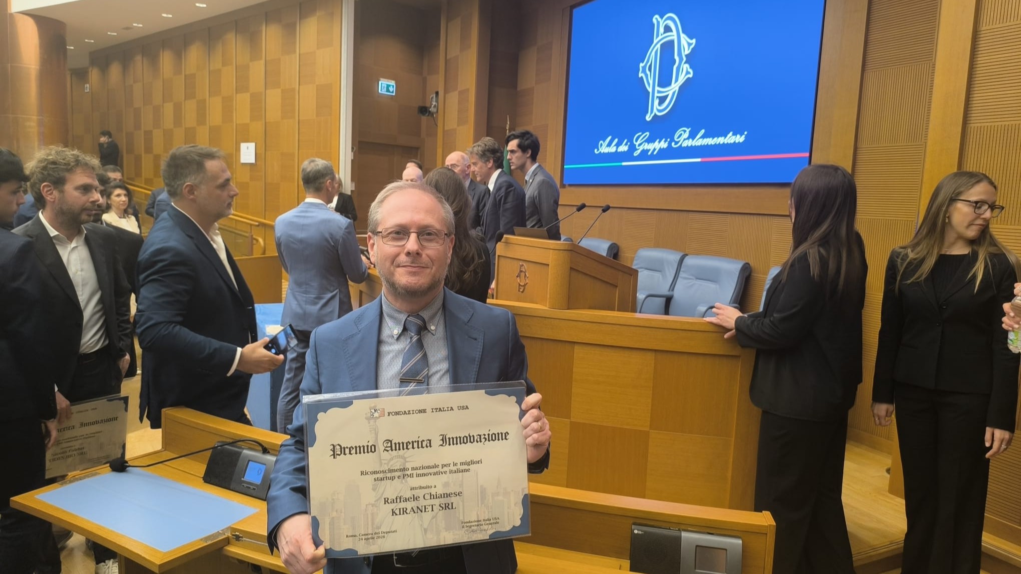 Aversa (Caserta) – Un riconoscimento che certifica un percorso costruito nel tempo, tra ricerca applicata e sviluppo tecnologico. Kiranet, azienda italiana attiva nella sanità digitale e nelle tecnologie avanzate, è stata insignita del Premio America Innovazione – IV edizione, promosso dalla Fondazione Italia Usa, durante la cerimonia ospitata nell’Aula dei Gruppi Parlamentari della Camera dei Deputati.