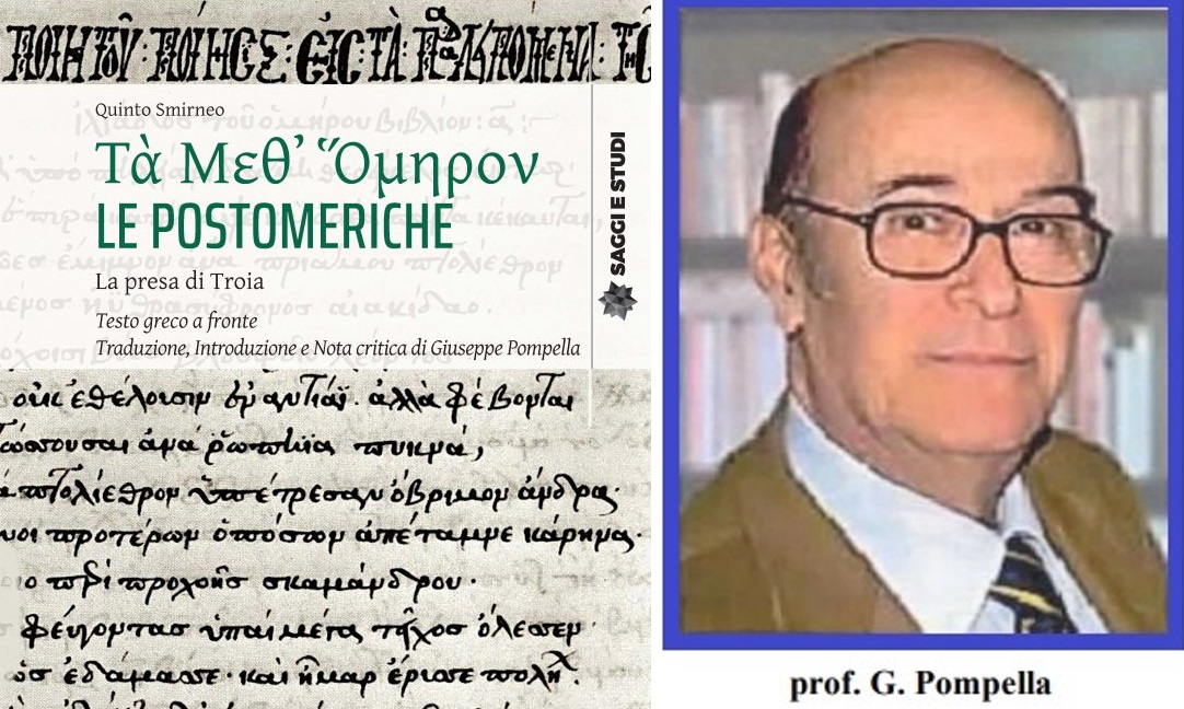 L’imponente volume di più di 600 pagine presenta – con testo originale greco a fronte – un ampio poema epico-eroico di età tardoantica intitolato Tà meth’Hómeron (o più comunemente in Latino Posthomerica), attribuito dalla tradizione al semi-sconosciuto poeta Quinto Smirneo. Edito dalla Pisa University Press, il libro ha lo scopo di offrire (agli specialisti e non solo) la versione definitiva e riunificata della traduzione dell’intera opera dello Smirneo realizzata da Giuseppe Pompella che, già tra il 1979 e il 1993, aveva dato alle stampe la propria resa in italiano delle Postomeriche in tre volumi. La nuova edizione ha, inoltre, il grande pregio di essere fornita di un lessico e di un ritmo rivisti e migliorati dal figlio Alfonso e dallo stesso arricchita grazie a un indispensabile e utile apparato di note a piè di pagina, in cui vengono di volta in volta illustrati e chiariti i moltissimi accenni mitologici e letterari del poema.