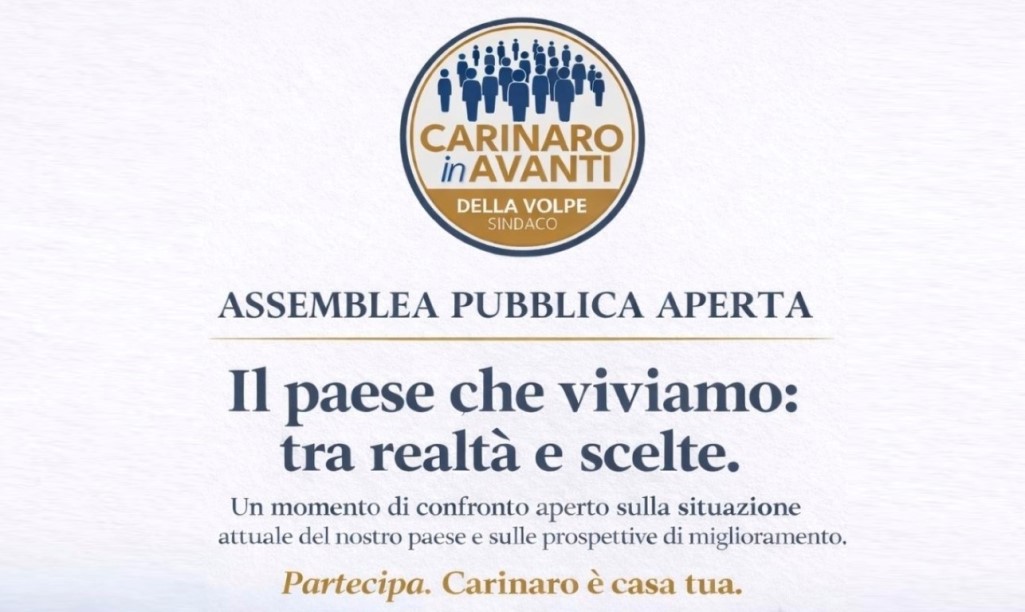 Carinaro (Caserta) – Un invito diretto alla cittadinanza per discutere presente e prospettive del territorio. Il gruppo di opposizione “Carinaro in Avanti” promuove un’assemblea pubblica aperta, in programma domenica 19 aprile, con l’obiettivo di coinvolgere i cittadini in un momento di confronto sulle condizioni attuali del paese e sulle possibili scelte per il futuro.