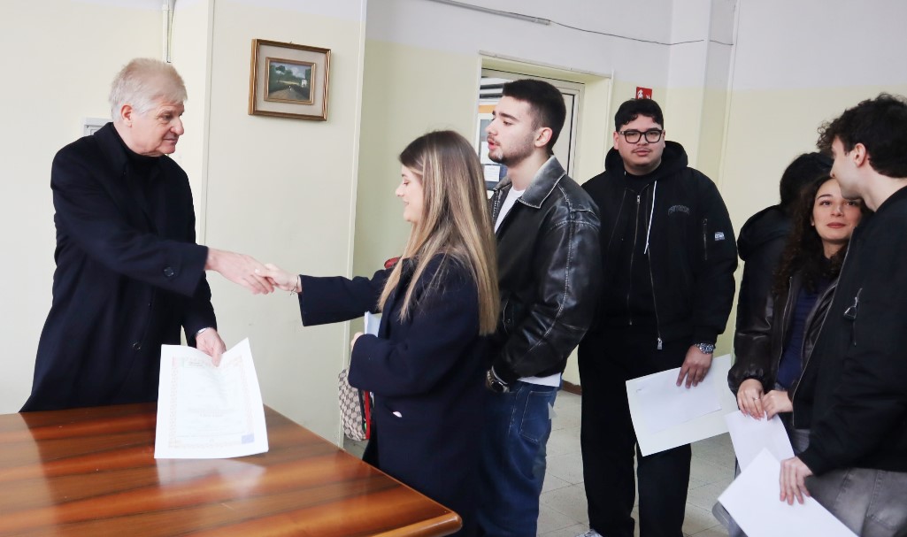 A consegnare i diplomi è stato il dirigente scolastico dell’anno scolastico 2024/25, professor Luigi Suppa, affiancato dalla dirigente scolastica in carica, professoressa Daniela Tagliafierro, alla presenza di numerose famiglie che hanno condiviso un momento simbolico e partecipato.