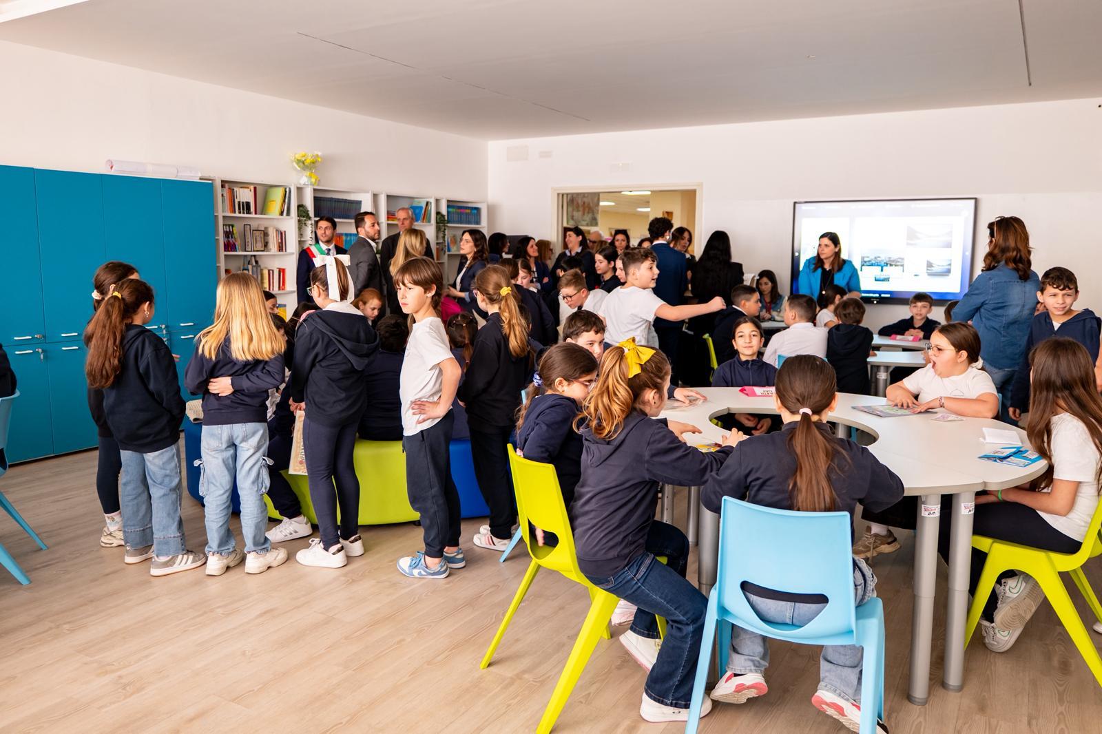 Spazi per crescere – I nuovi ambienti sono stati progettati per offrire agli alunni luoghi moderni e stimolanti, dedicati alla lettura, allo studio e alle attività educative. Un’attenzione particolare è stata riservata agli studenti con bisogni educativi speciali, per i quali è stata realizzata una sala sensoriale protetta, pensata per favorire benessere, concentrazione e apprendimento.