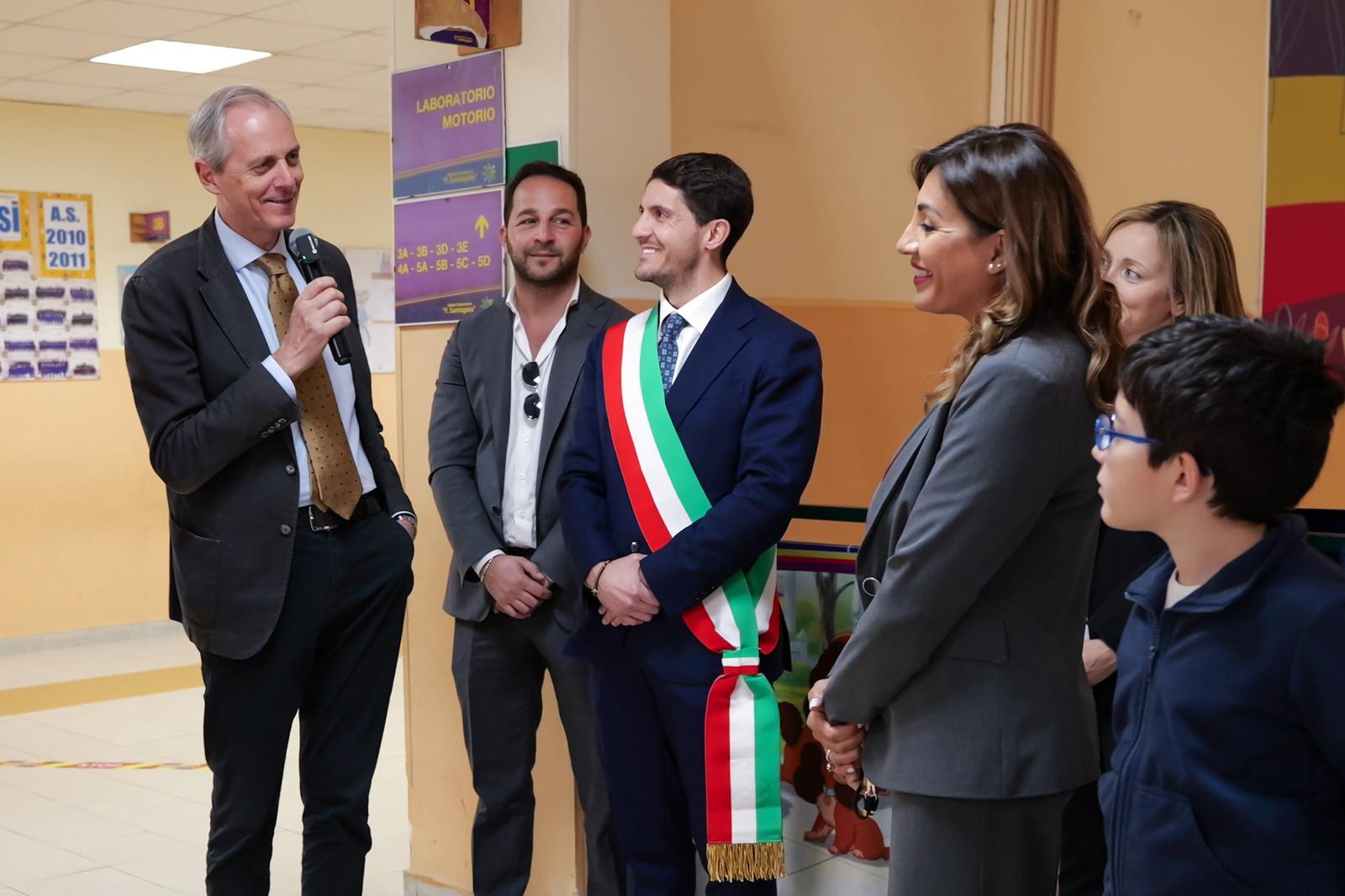 La cerimonia – All’appuntamento hanno preso parte Loredana Russo, dirigente scolastica dell’istituto, Gianfranco Liotti, direttore generale di Marican Holding, il sindaco Vittorio Lettieri, l’assessore alla Pubblica Istruzione Enza Fiorillo, il consigliere delegato agli Eventi Giacomo Di Ronza e la consigliera delegata alle Politiche Giovanili, Antonella Oliva.