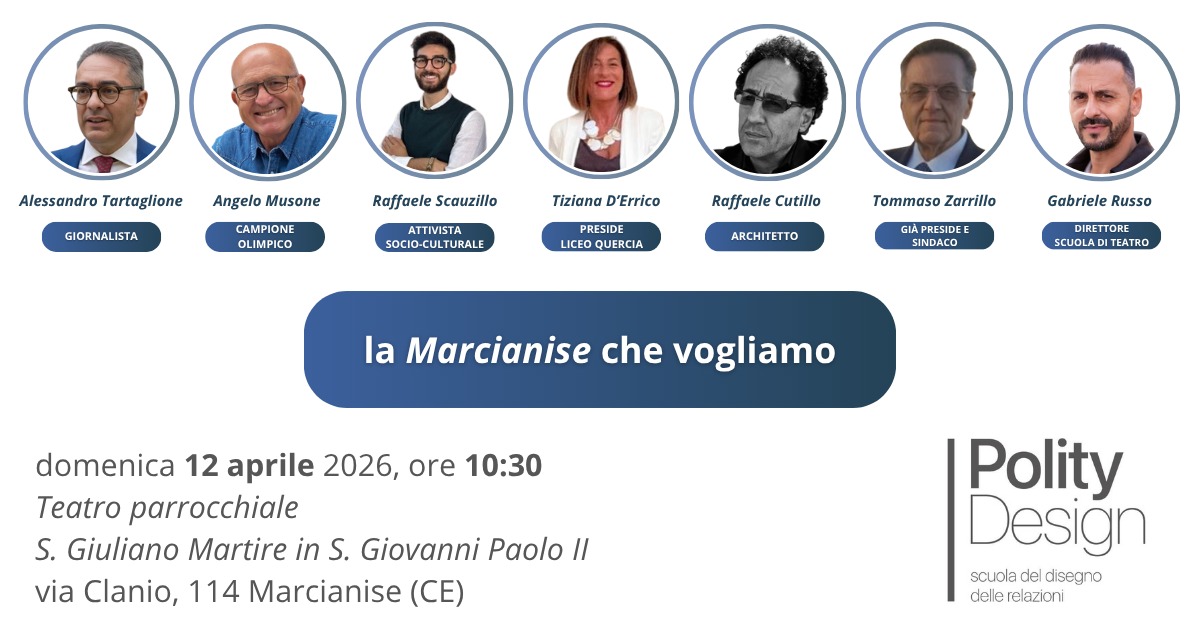 Marcianise (Caserta) – Un laboratorio civico che prova a rimettere al centro la comunità e il bene comune, chiamando a raccolta energie, competenze e visioni. È da qui che prende forma «La Marcianise che vogliamo», il progetto promosso da Polity Design, la scuola di classe dirigente di ispirazione cattolica accreditata dalla Conferenza episcopale italiana, che sceglie di mettersi in gioco nella città alle porte di Caserta in vista della prossima tornata elettorale.