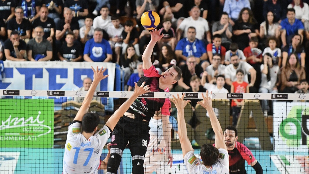 La sfida decisiva – In terra abruzzese, dopo il ko dell’andata e il successo al PalaJacazzi, i normanni si giocano tutto nella “bella”. Il primo set è una battaglia senza respiro: punto a punto, scambi lunghissimi e continui ribaltamenti fino al 39-37 finale in favore dei padroni di casa, maturato dopo una lunga serie di set point. Un parziale che indirizza la gara, ma che racconta la determinazione di Garnica e compagni, capaci di restare agganciati fino all’ultimo pallone.