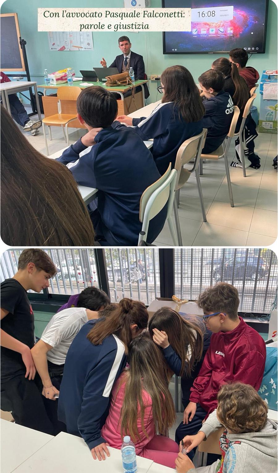 Giustizia, medicina e informazione – Il progetto ha toccato anche temi di attualità e professioni diverse. Con l’avvocato Pasquale Falconetti gli studenti hanno affrontato un debate sull’uso dei social media, mentre con la laureanda in Medicina Katia Cacciapuoti hanno approfondito il percorso universitario e le prospettive del lavoro ospedaliero, partecipando anche a un’attività ludica sulla conoscenza dei sintomi delle malattie. Nell’ultimo incontro, il giornalista Ignazio Riccio ha guidato una riflessione sul ruolo dei social, sulle sfide del giornalismo contemporaneo e sull’impatto dell’intelligenza artificiale.