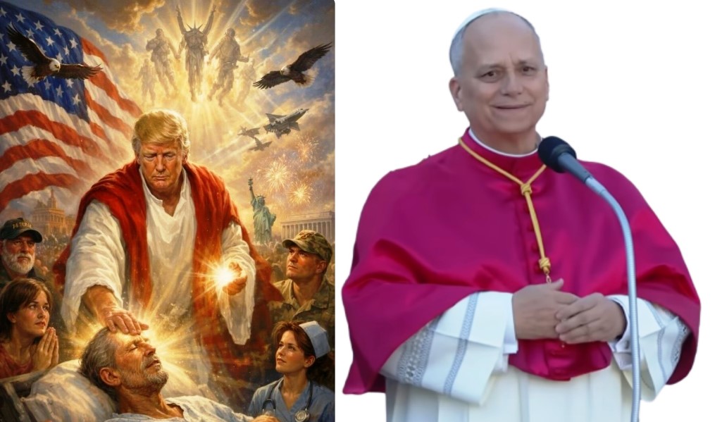 L’immagine che ha suscitato indignazione – La fotografia diffusa da Trump lo ritrae in versione “Gesù”, con una tunica bianca e rossa mentre impone la mano sulla fronte di un malato, con una luce divina che emana dall’altra. Attorno a lui compaiono una dottoressa, un militare e altre figure adoranti, mentre sullo sfondo si distinguono la bandiera degli Stati Uniti, un’aquila e la Statua della Libertà. L’immagine, realizzata con AI, ha provocato reazioni di forte indignazione non solo nella comunità cattolica, ma anche tra alcuni sostenitori del presidente, che l’hanno giudicata irrispettosa e fuori luogo.